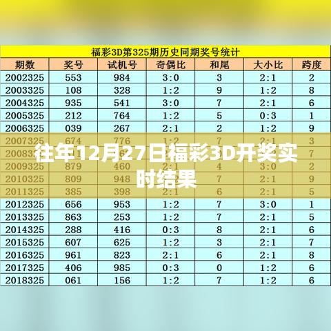 随着社会的进步和人们生活水平的提高,福利彩票已成为广大民众休闲娱乐的一种方式,福彩3D因其直观、易于参与的特点,备受大家关注,本文将带您回顾往年12月27日的福彩3D开奖实时结果,共同见证幸运时刻。
