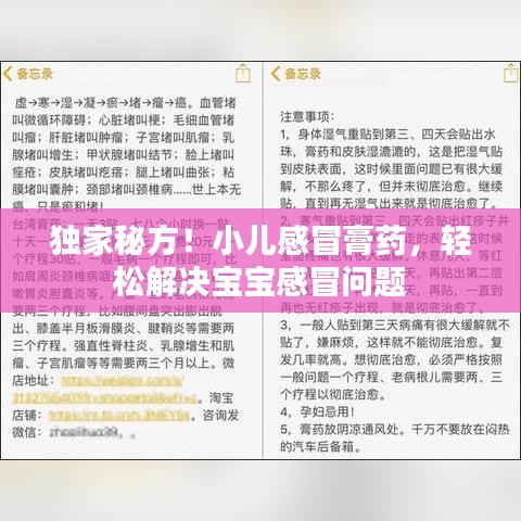 小儿感冒膏药独家秘方是一种针对小儿感冒的中医治疗方法,该秘方采用天然草本成分,独特配方,易于吸收,安全性高,在使用前,请咨询专业医生,了解孩子的身体状况是否适合使用,在使用过程中,注意观察孩子的病情变化,如有异常,请及时就医,希望该秘方能够帮助广大家长解决小儿感冒的问题,让孩子健康成长。