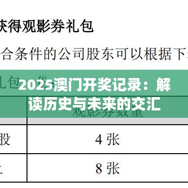2025澳门开奖记录:解读历史与未来的交汇点