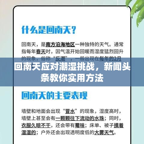 随着气温逐渐回升,我国南方地区开始进入了一年一度的回南天季节,回南天是指春季气温回升较快,空气湿度大,导致天气潮湿、闷热的现象,这种天气不仅让人感到不适,还可能对人们的日常生活和身体健康造成影响,本文将针对回南天新闻头条的相关报道,探讨如何应对潮湿天气带来的挑战。