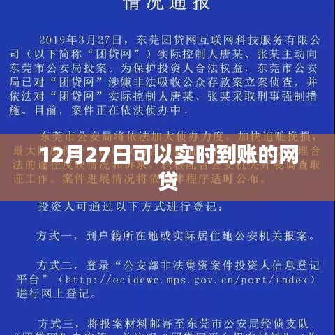 随着金融科技的发展和互联网的普及,网贷行业逐渐崭露头角,为广大借款人和投资者提供了一个便捷、高效的借贷平台,在众多的网贷产品中,实时到账的贷款备受关注,本文将介绍在12月27日,哪些网贷平台能够实现资金的实时到账,并探讨其背后的优势与注意事项。